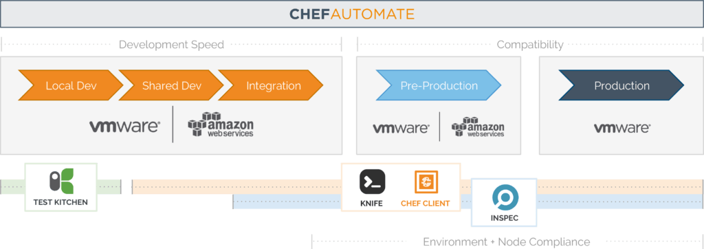 We have created both knife-vcenter and kitchen-vcenter to take advantage of VMware on AWS and help drive your developers’ stories. Leverage kitchen-vcenter to drive your cookbook development in AWS, and promote it to your Software Defined Data Center (SDDC). Or, use knife-vcenter to spin up machines via the typical Chef DevOps process.