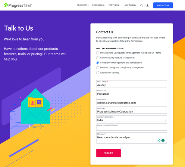 Progress Chef is committed to improving our products and services, providing greater value to our customers, and supporting the Chef community with innovative solutions for managing compliance and cloud security.