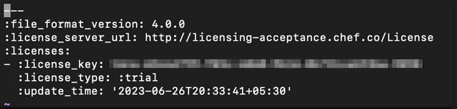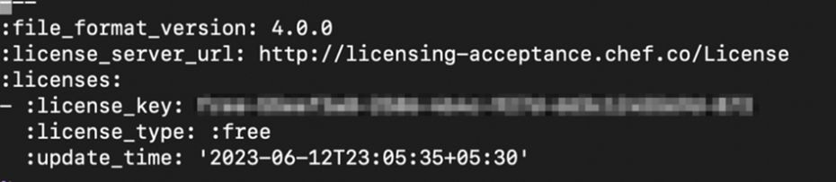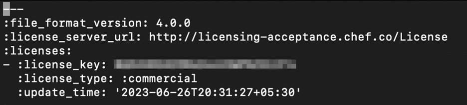 6. The details of the License file will be saved in licenses.yaml file under the .chef directory.