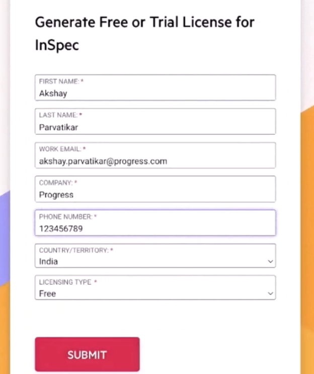 - Enter the License Key and submit. Chef InSpec 6 – Free Tier will be activated and valid for ten targets.