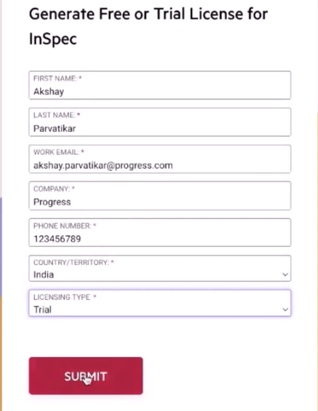 - Enter the License key and submit. Chef InSpec 6 – The trial version will be activated and valid for 30 days from activation.