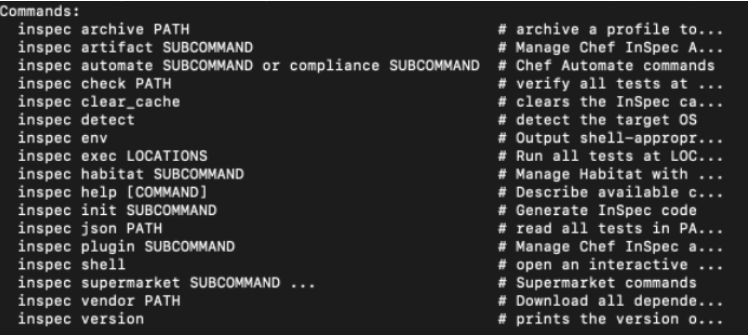 $ inspec help is to understand different available commands.