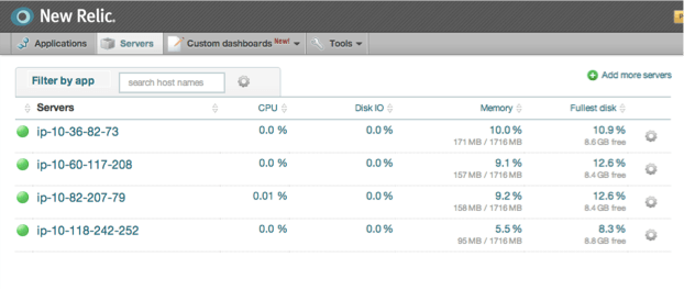 The next time the chef clients converge, they automagically install the correct New Relic server monitoring agent (in this case, for Ubuntu 10.04) and start sending data back to the new relic account.