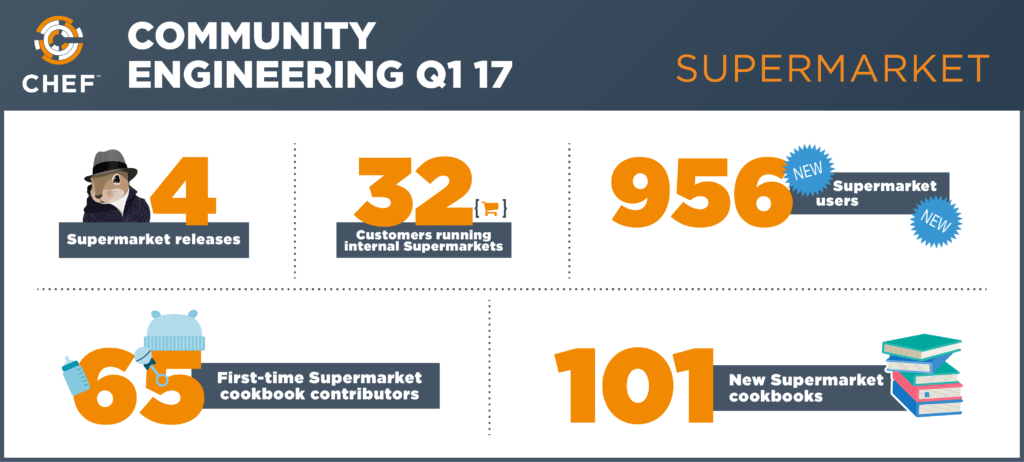 We’re excited to be in Austin, TX this week for ChefConf. Today we’re hosting a Community Summit so it’s a great time to reflect on some of the amazing things the community and community engineering team at Chef completed in the first three months of the year!
