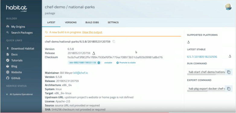 We decided to showcase the Habitat National Parks Demo (initially created by the Chef Customer Facing Teams). This app highlights packaging Java applications with Habitat (many of our Enterprise customers heavily use Java) and running two Habitat services – one for the Java app, and one for the MongoDB database used by the app.