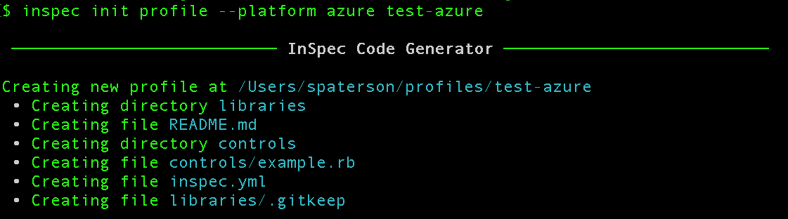 Each resource pack has instructions on how to set up the necessary provider credentials. For now, let’s assume that these are available and InSpec is also installed locally.