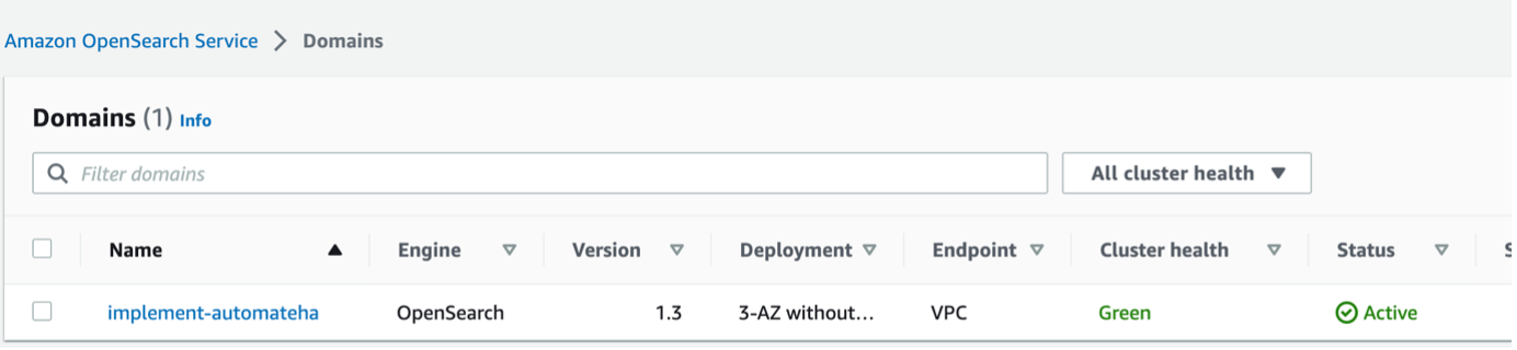 You can confirm your OpenSearch installation by checking the Cluster health.
