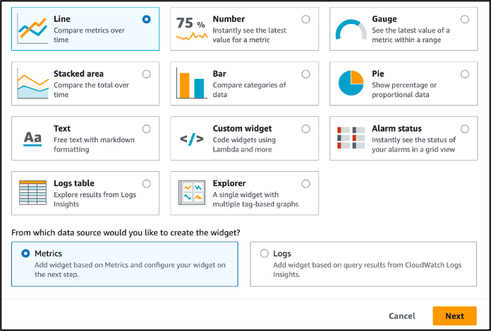 To start with AWS monitoring navigate to the CloudWatch Console and select Metrics and All Metrics from the menu. As all organizations are unique regarding what should be monitored, choose all the metrics that are meaningful to the team to get the right level of observability.
