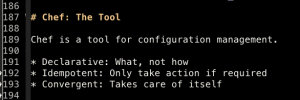 Since Markdown is widely used, this opens up avenues for those interested to make contributions. (At the Opscode Chef Community Summit, we had a session on Chef training, and the consensus from participants was in favor of a Markdown-based source format.)