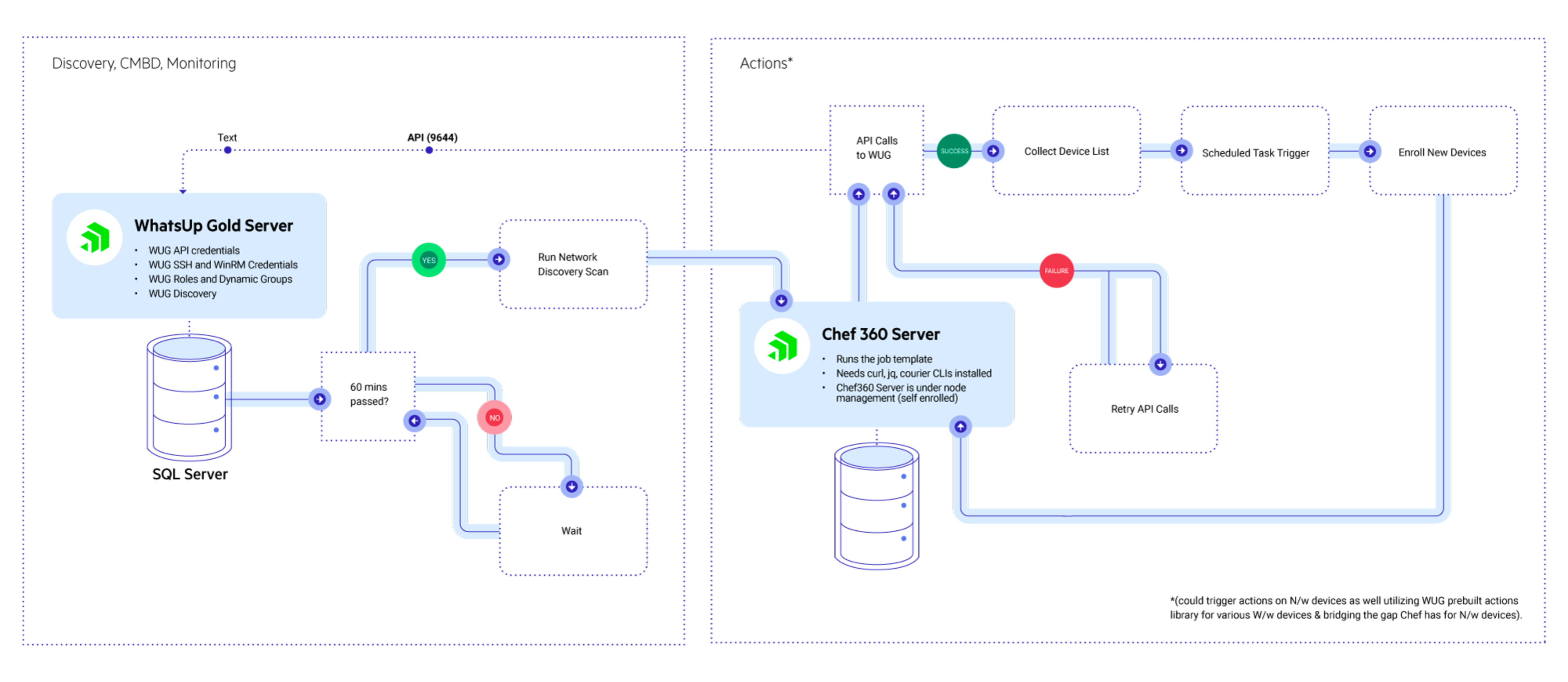 This integration is not just a technical bridge; it is, in fact, a structured, powerful and strategic alignment between the WhatsUp Gold software and the Chef platform, creating a seamless, end-to-end enterprise infrastructure management solution. WhatsUp Gold monitoring solution excels at discovering and monitoring network-connected devices, while the Chef platform brings robust configuration management and compliance enforcement to the table. Together, they form a robust solution that empowers IT operations, security teams and DevOps engineers to manage infrastructure holistically.