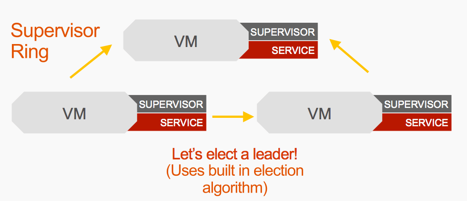 The example in the above video is one supervisor running one service. But one service is pretty limiting. Once we go beyond one service, we need a supervisor ring.