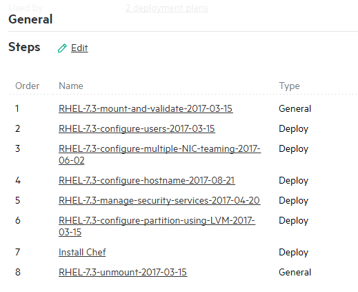 Now you might be wondering how to configure the machine once it’s up and running. Since it’s a bare-bones Red Hat 7.3 OS, George still needs to install some packages and middleware before we can get the application running. In order to bootstrap the machine with Chef and get all of that set up correctly, he needs to add a simple bash script to the OS build plan. All of the Synergy and Image Streamer API endpoints can be configured using Chef. Our installation script goes toward the end of the build process as shown below:
